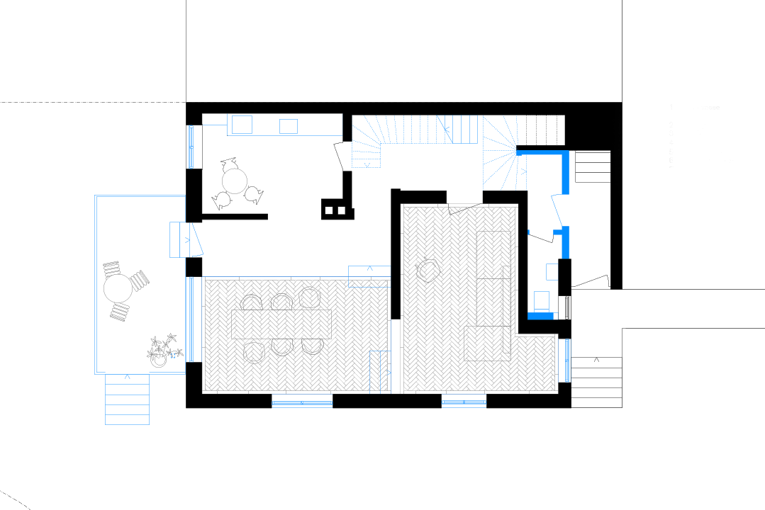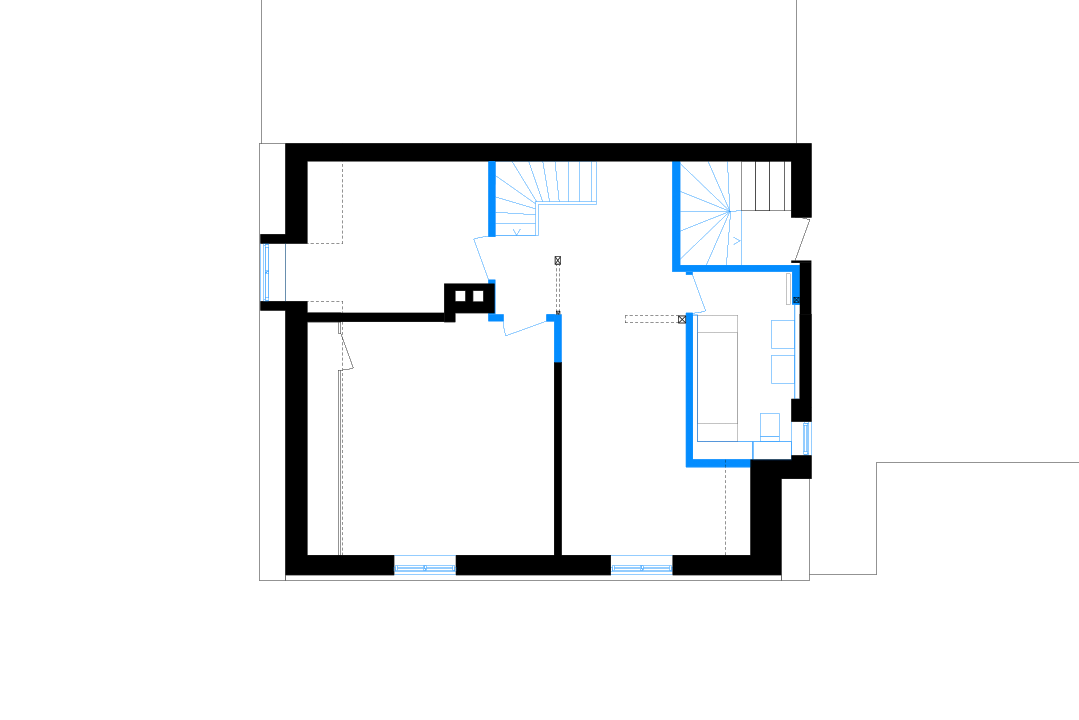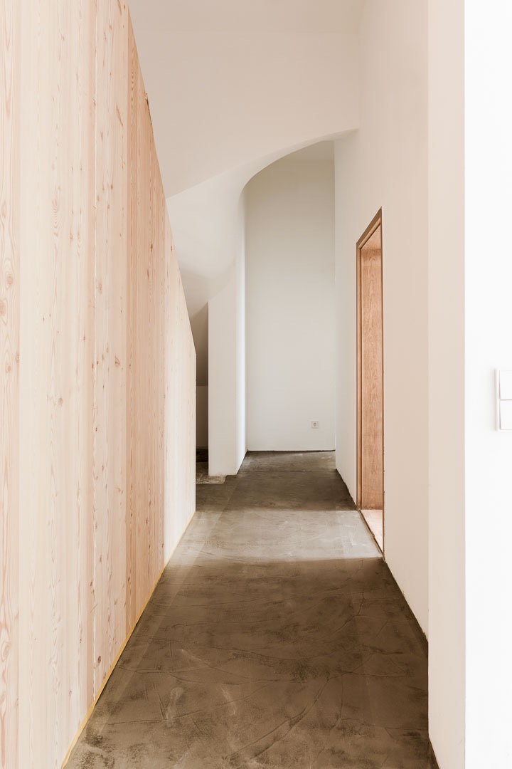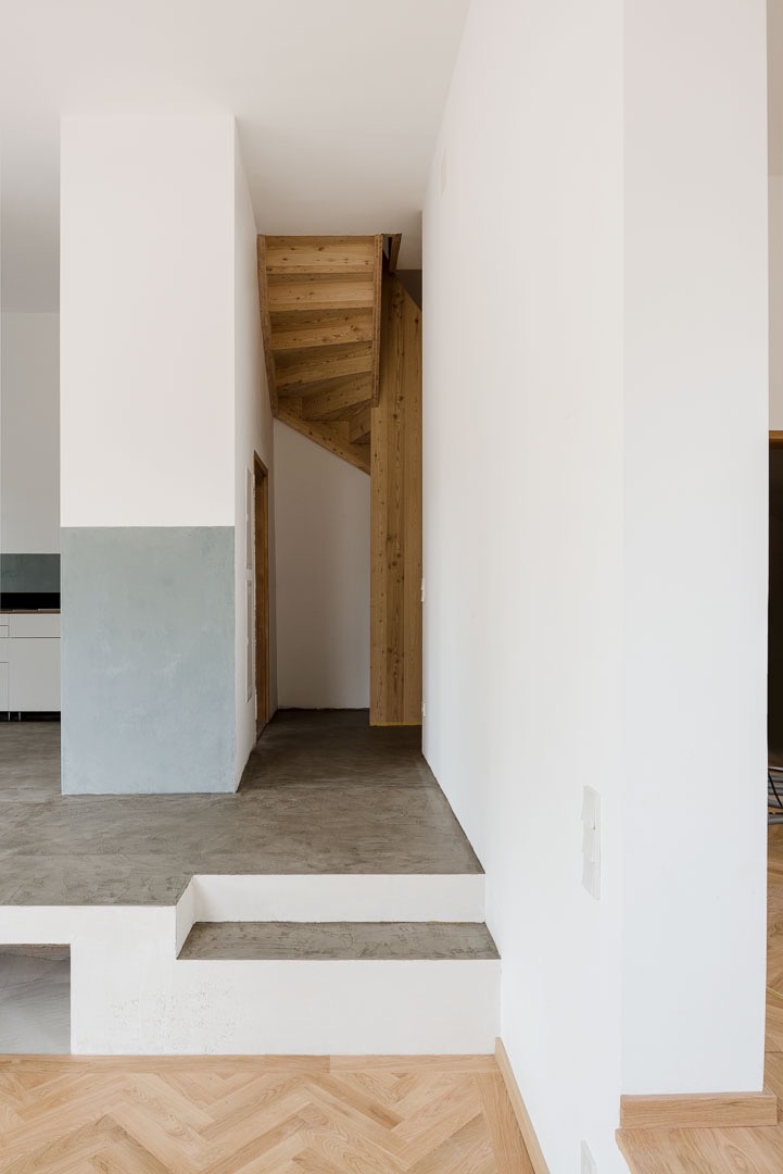 Um die ursprünglichen Qualitäten des Hauses hervorzubringen, mussten praktisch alle Eingriffe der letzten Jahrzehnte rückgängig gemacht werden. Es wurde auf die Grundmauern zurückgeführt, im Hauptraum auch auf die ursprüngliche, tiefer liegende Bodenplatte.