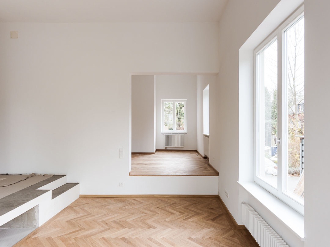 Haustechnik und Elektrik wurden erneuert, neue Fenster und Türen eingebaut, neue Bäder, und eine Innentreppe eingefügt.