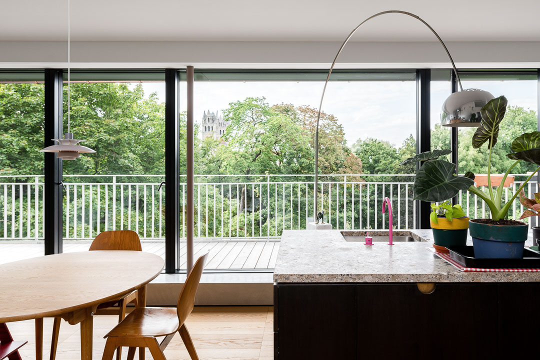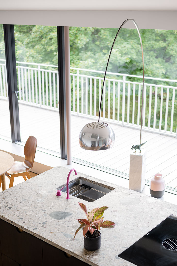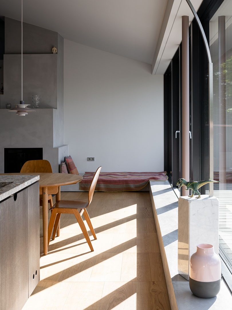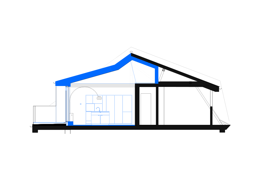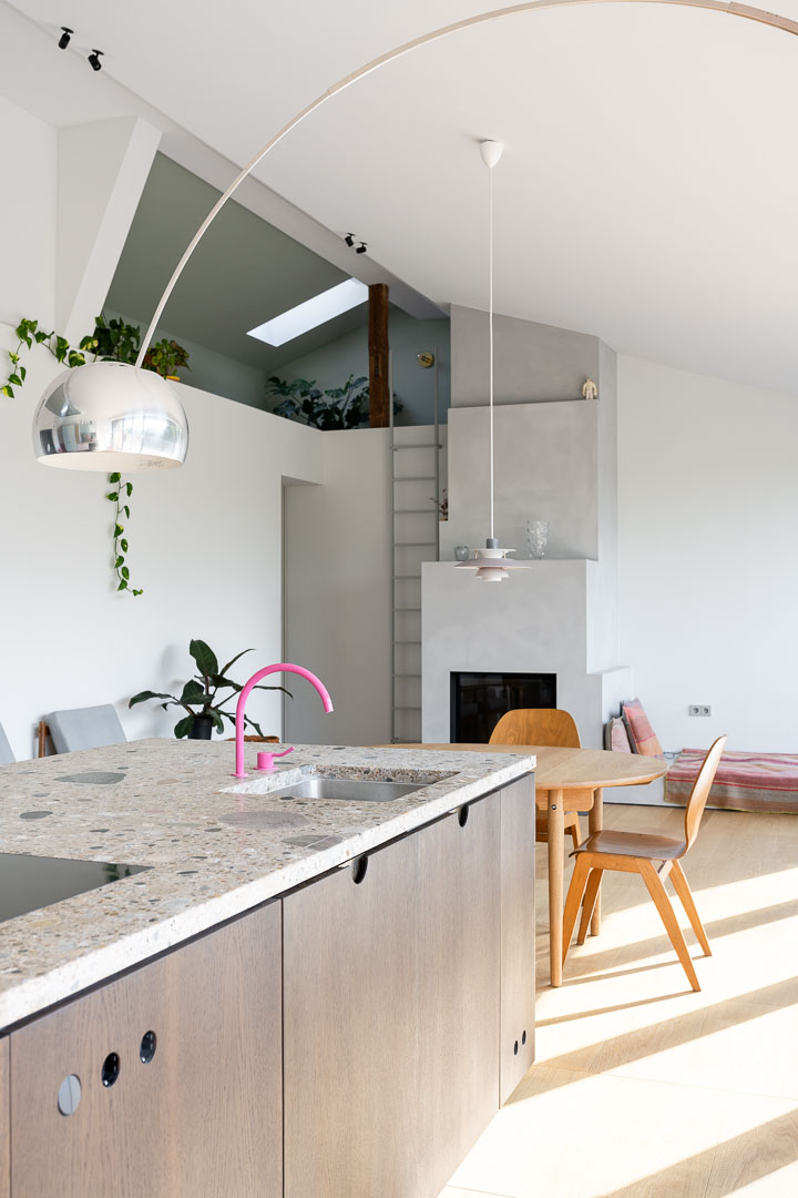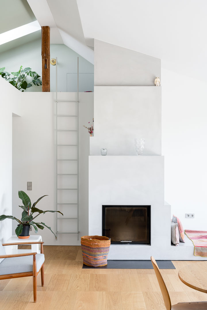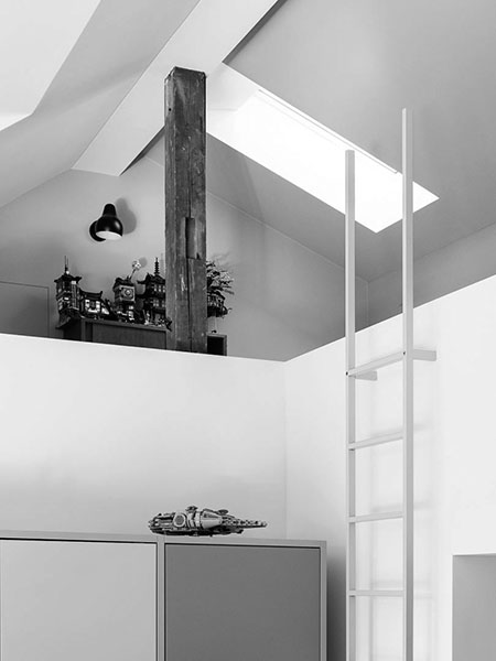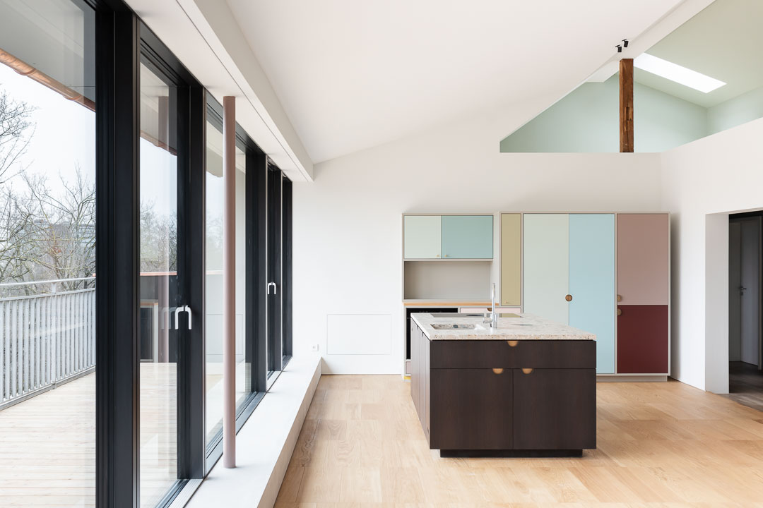 Die Schleppgaube, in der sich die grosse Wohnküche befindet, wurde inklusive Dach, Fassade und aller Oberflächen saniert, mit Erweiterung in den darüberliegenden Kriechspeicher und Ausbau von zwei Galerien.
