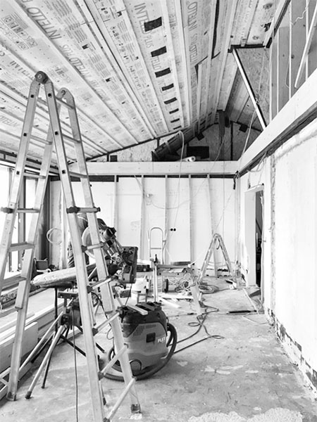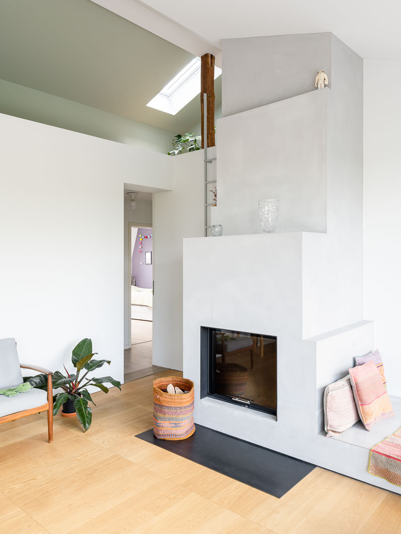 Dazu wurden Heizungs- und Elektroinstallationen angepasst, ein Kaminofen eingebaut und eine Küche angefertigt.
