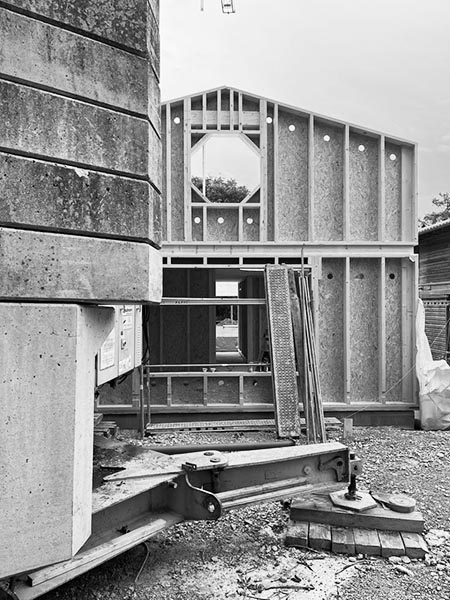 Planung für einen Neubau mit integrierter Werkstatt auf ein Seegrundstück am Wörthsee mit der Absicht, einen angemessenen Baukörper auf dem schmalen Grundstück zwischen zwei Bestandshäusern zu platzieren.