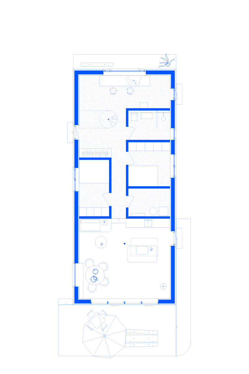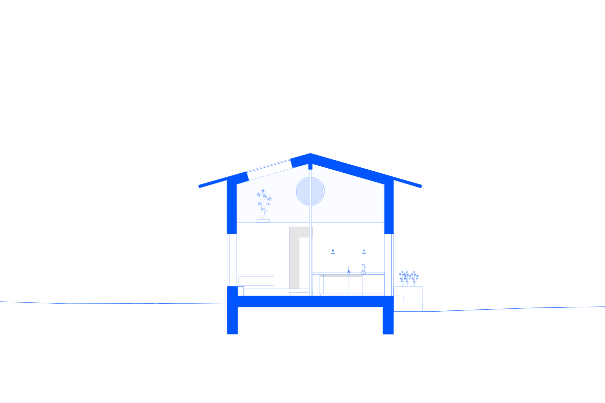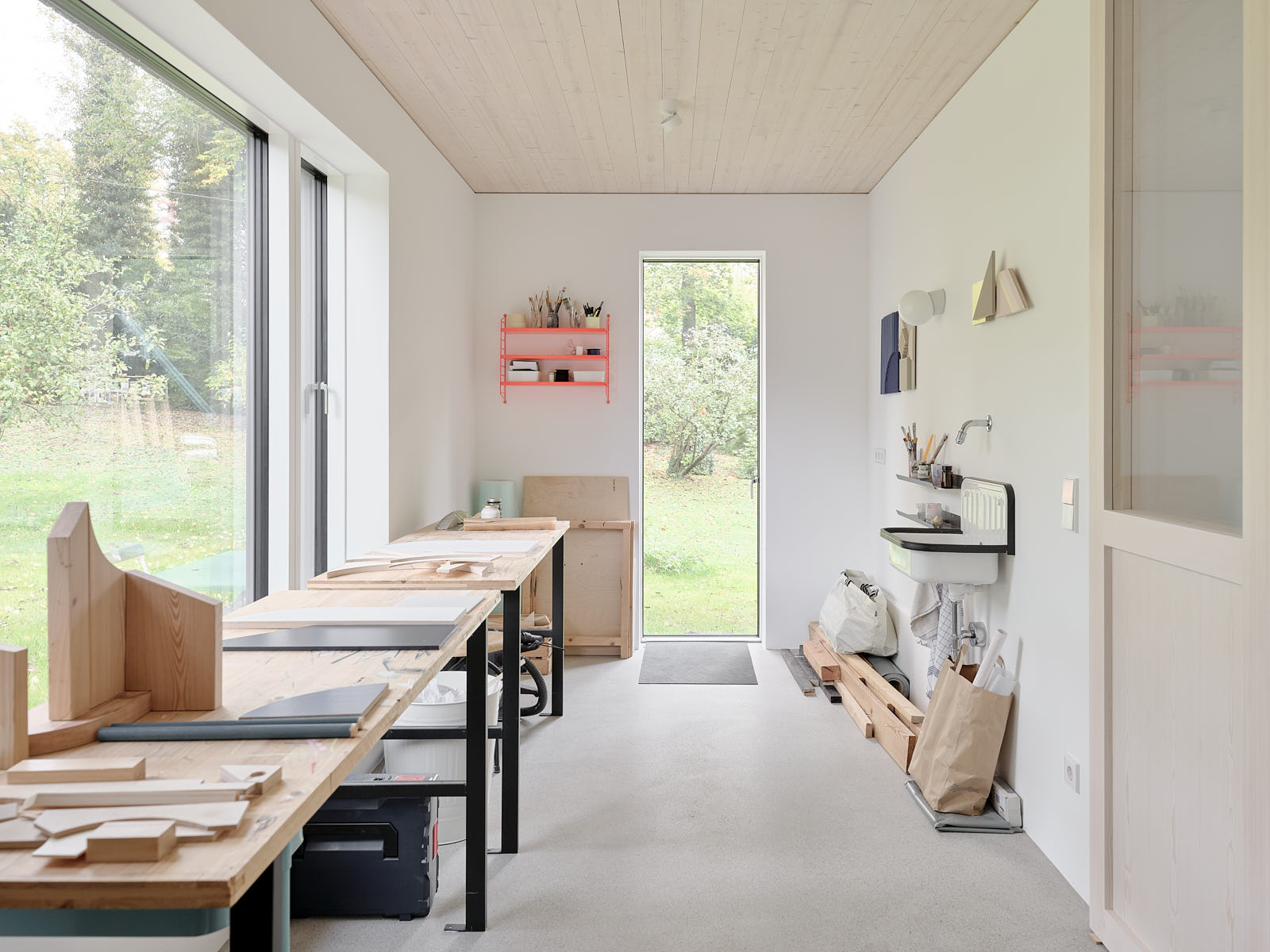 Das Gestaltung des Hauses ist angelehnt an traditionelle Bootshäuser, bei denen ein großes Satteldach die Fassade schützt. Der Holzbau ist nicht unterkellert.