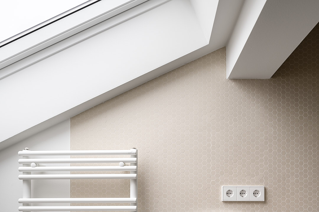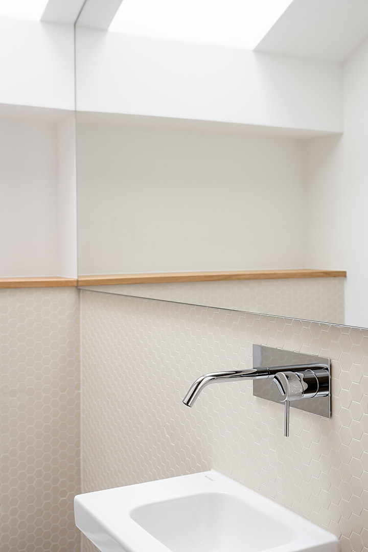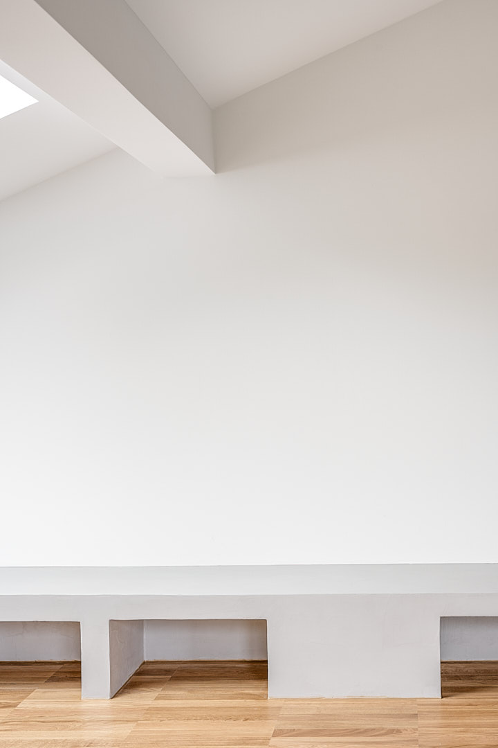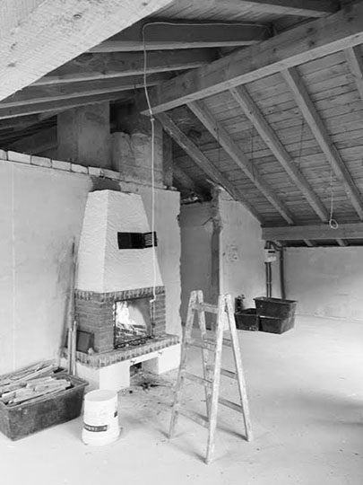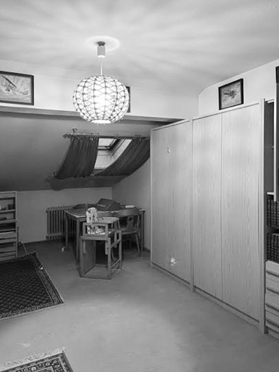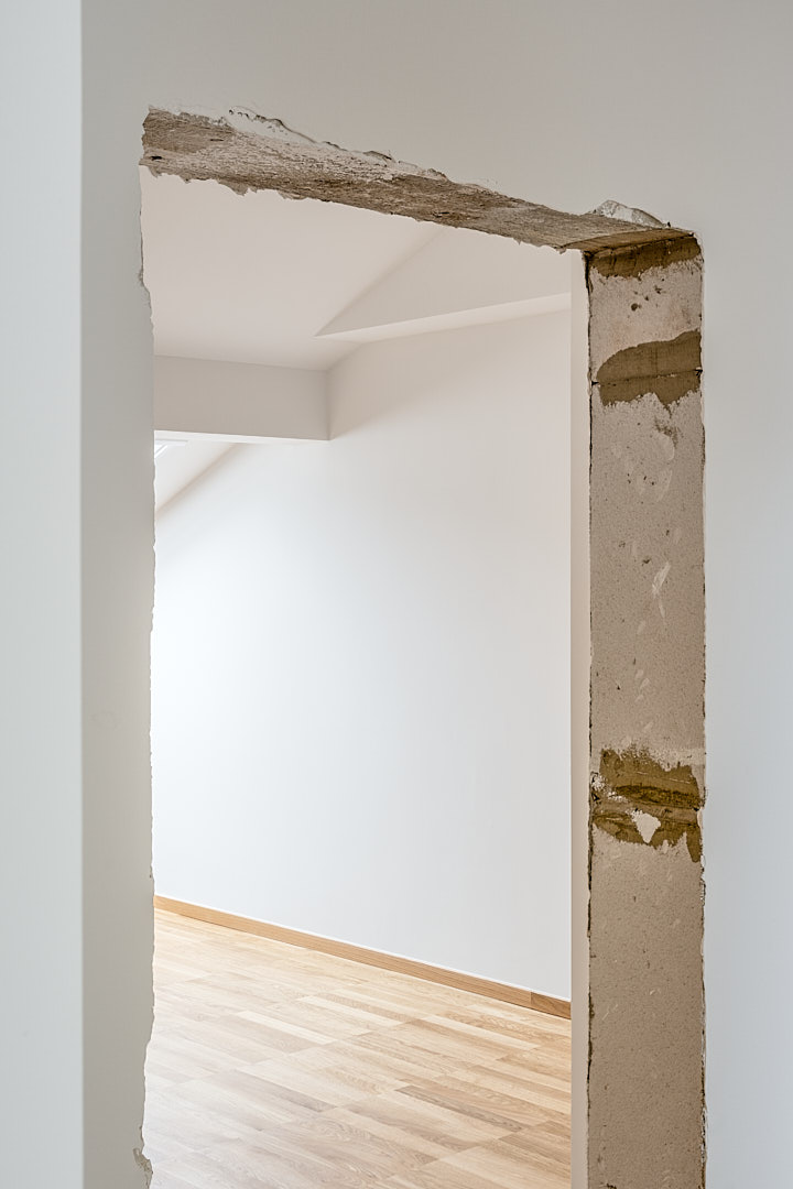 Die Dachgeschosswohnung von 1978 wurde umfassend saniert, mit Erweiterung in den Dachraum, Dachflächenfenstern, Anpassung der Haustechnik; der bestehende Kaminofen überarbeitet, alle Oberflächen und die Bäder erneuert.