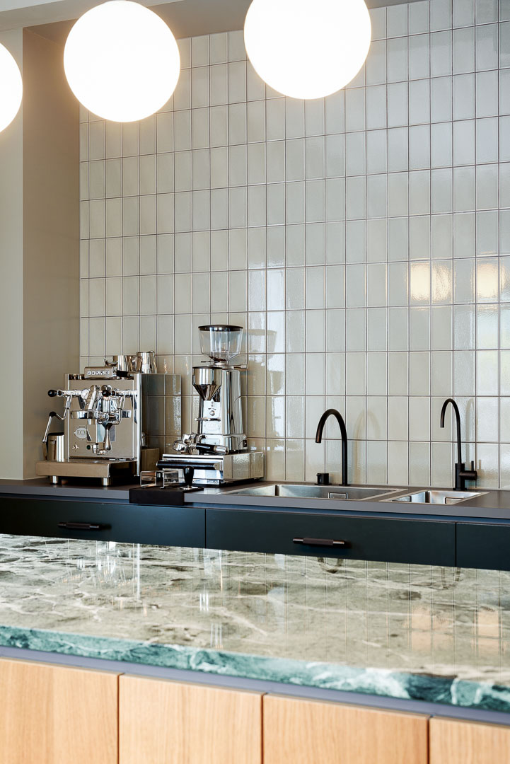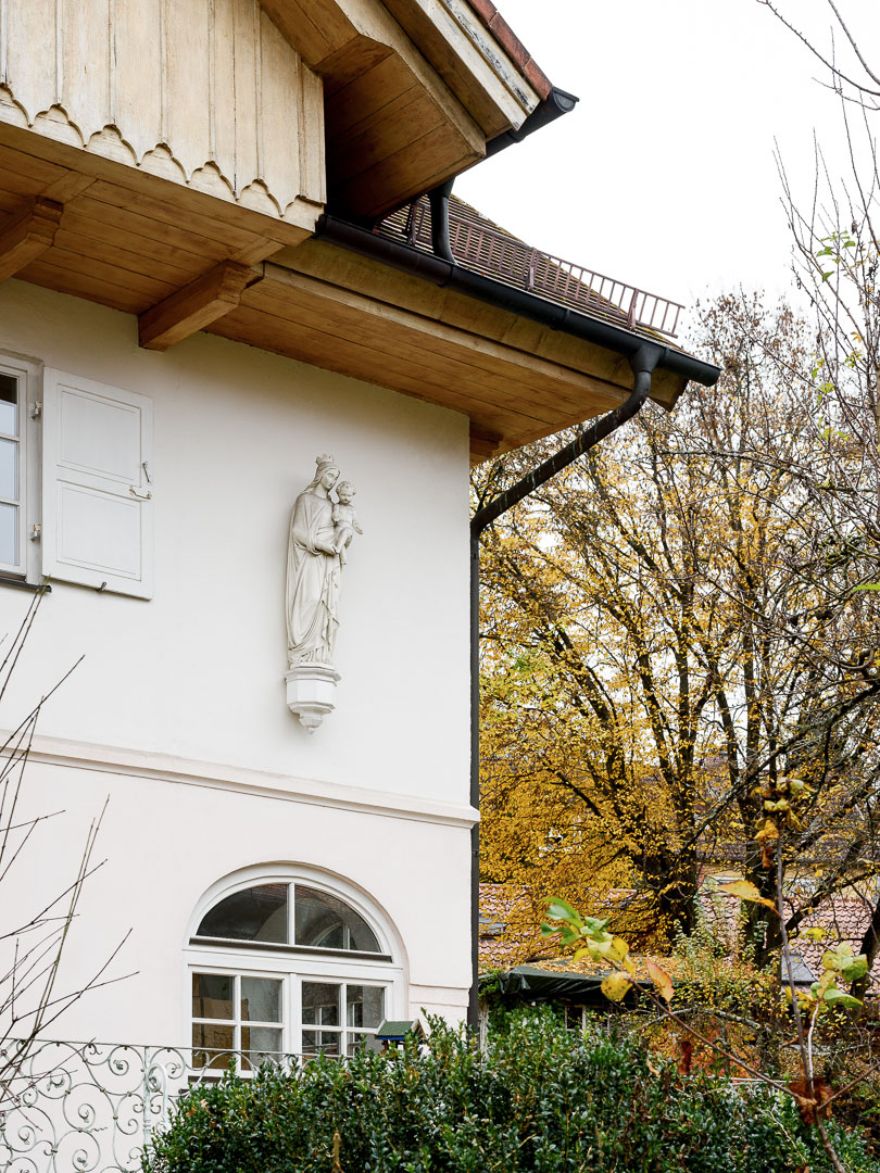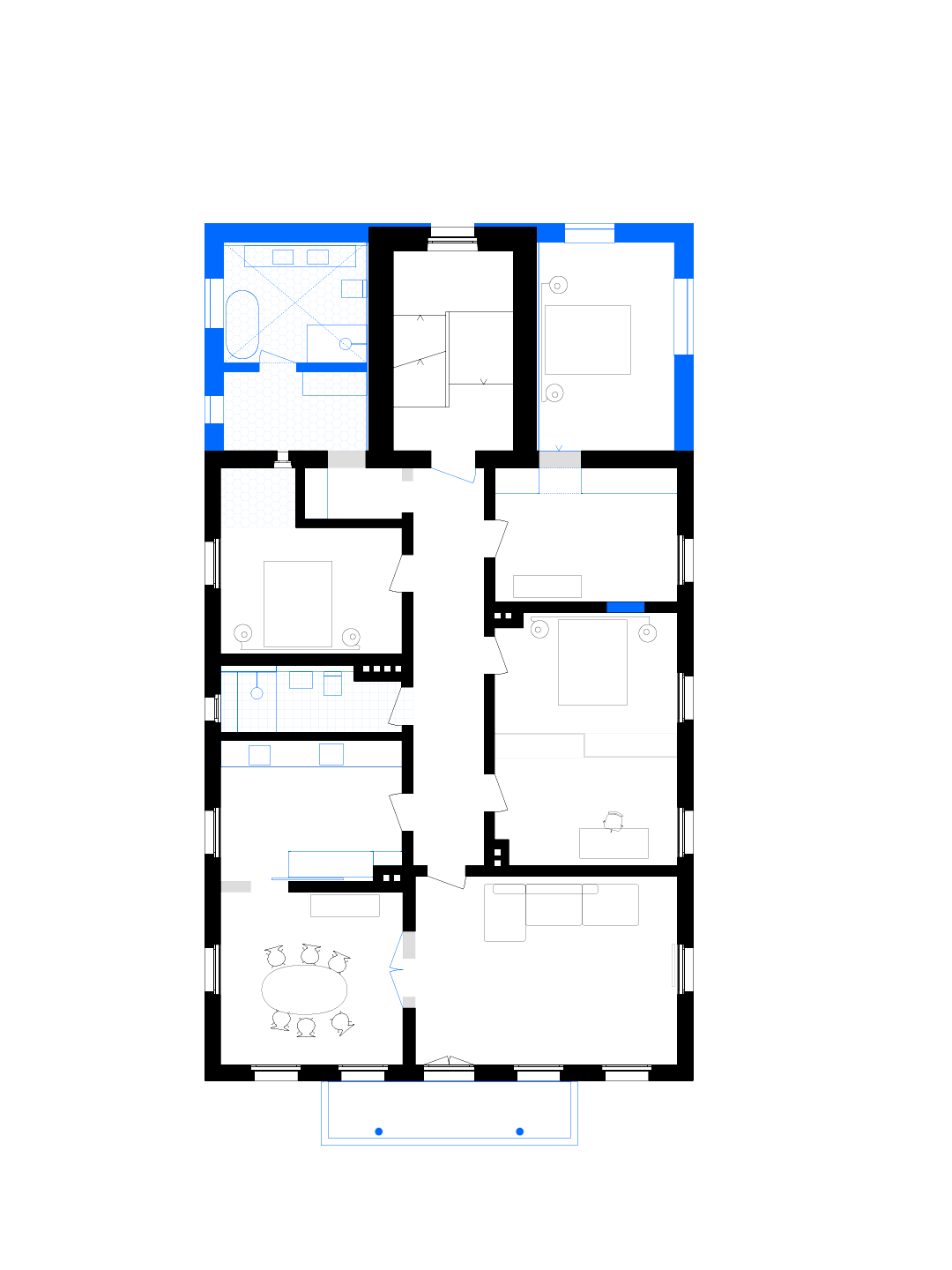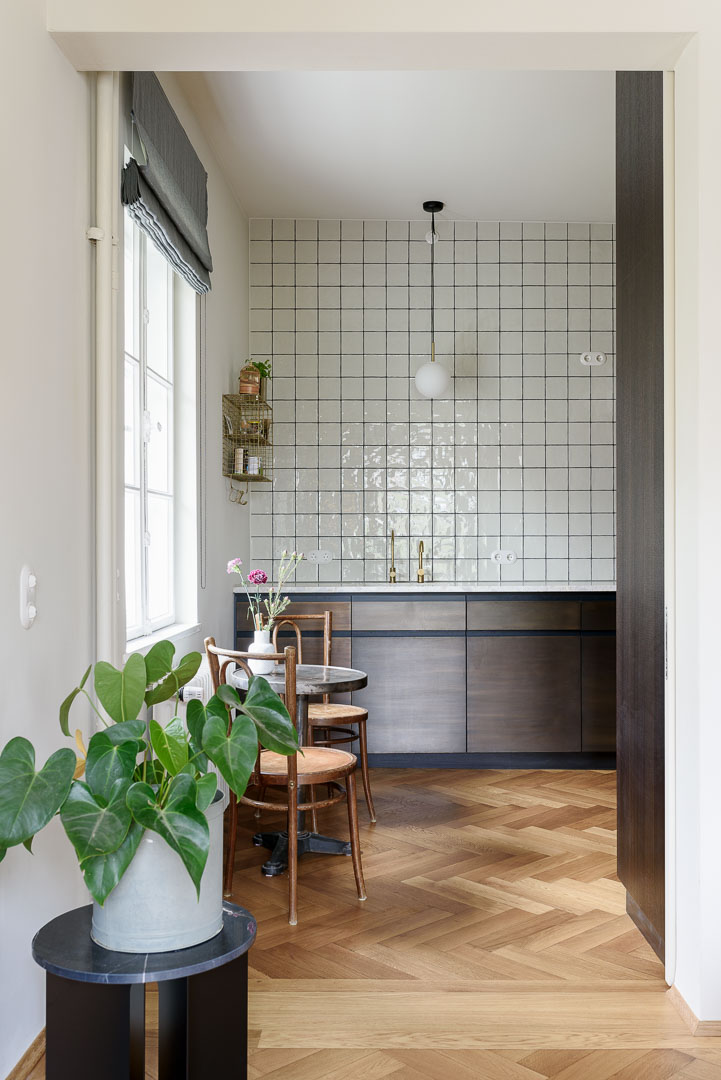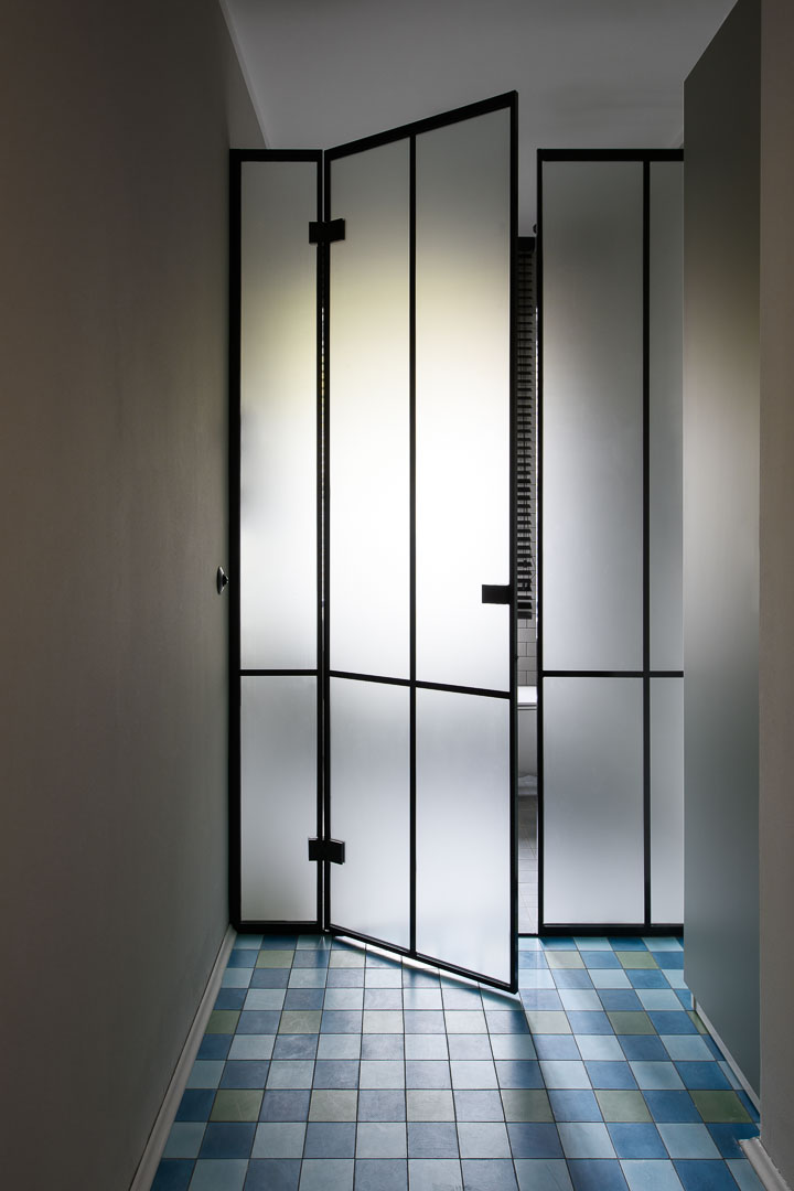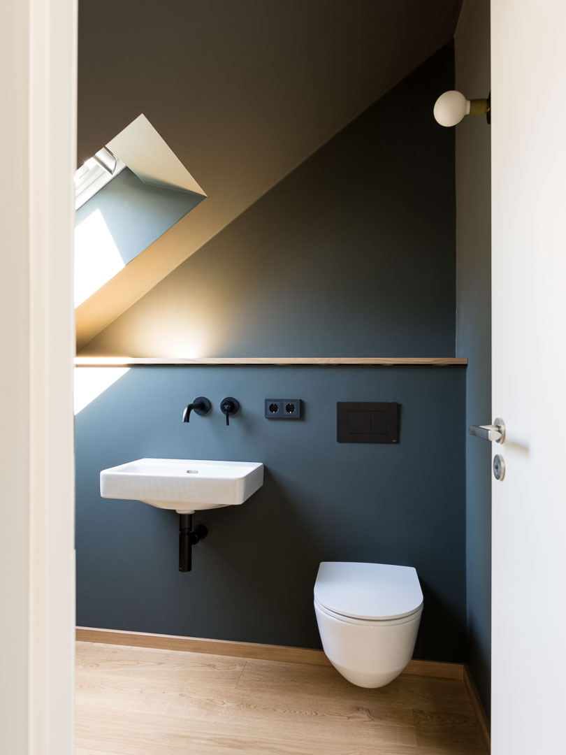 Erweiterung und Instandsetzung eines Mehrfamilienhauses mit Umbau in ein Yogastudio und drei Wohnungen (Gebäudeklasse IV). Dafür wurde das Haus um einen profilgleichen Anbau erweitert, der das bestehende Treppenhaus einschließt. Der Anbau wurde in massiver Holzbauweise ausgeführt und ist im östlichen Teil im Schnitt leicht versetzt zum Bestandsgebäude. Das Dach wurde in Stand gesetzt, um den Anbau erweitert und gedämmt. Die Haustechnik, die z.T. noch aus den 20er Jahren stammte, wurde erneuert. Die Decken wurden brandschutztechnisch überholt, alle Oberflächen überarbeitet und die Bäder erneuert. Der Bestand wurde dabei soweit wie möglich herausgearbeitet bzw. erhalten.