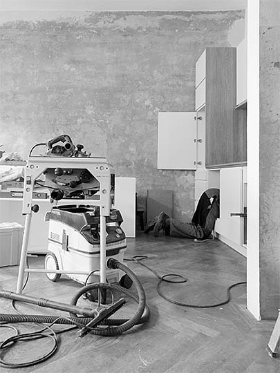 Die Hauptmaßnahmen waren die Verlegung der Küche, um ein zusätzliches Schlafzimmer für die Familie zu schaffen, und die Sanierung des Bads.