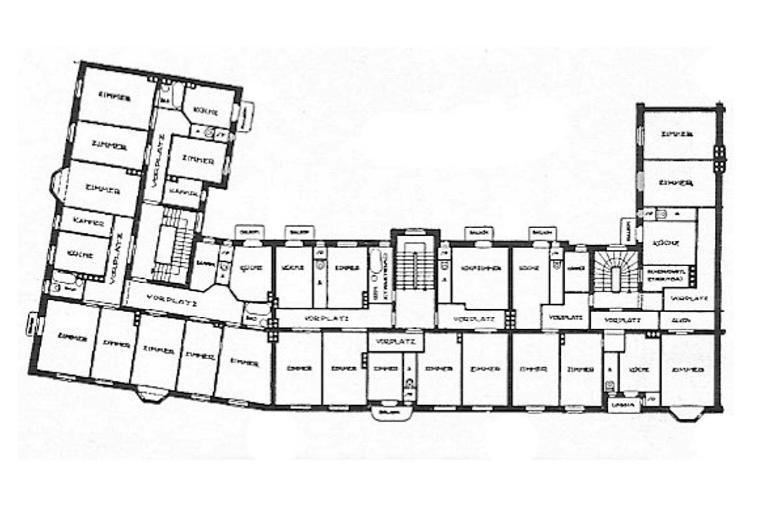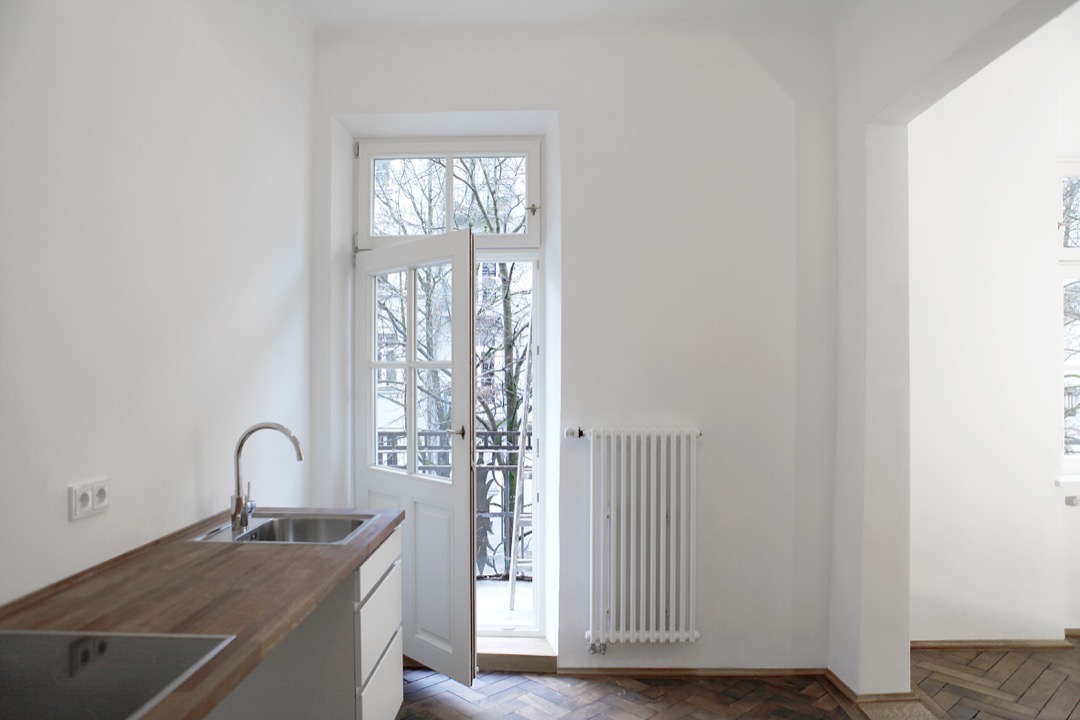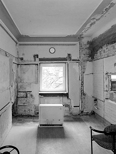 Da sich die Wohnungen trotz Denkmalschutz in einem katastrophalen Zustand befanden, mussten sie zunächst soweit möglich rückgebaut werden. Sämtliche nicht bauzeitliche Einbauten wurden entfernt und bis auf die Originalsubstanz zurückgeführt.