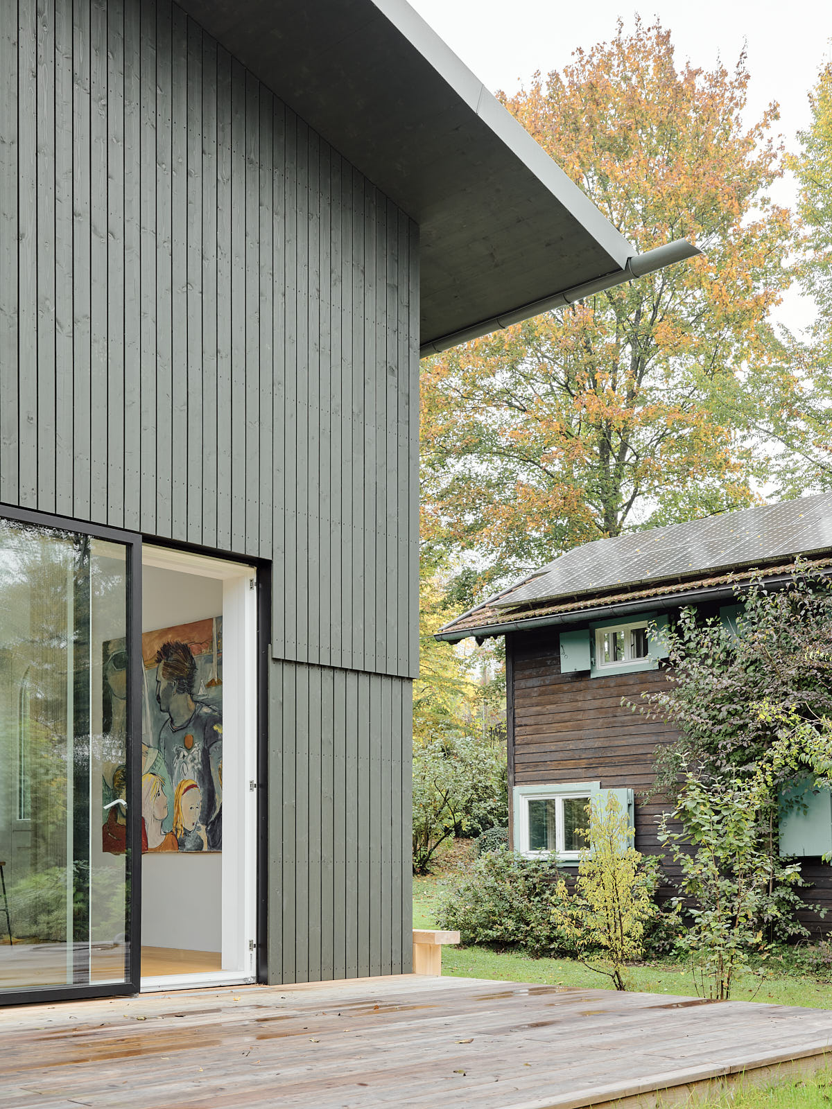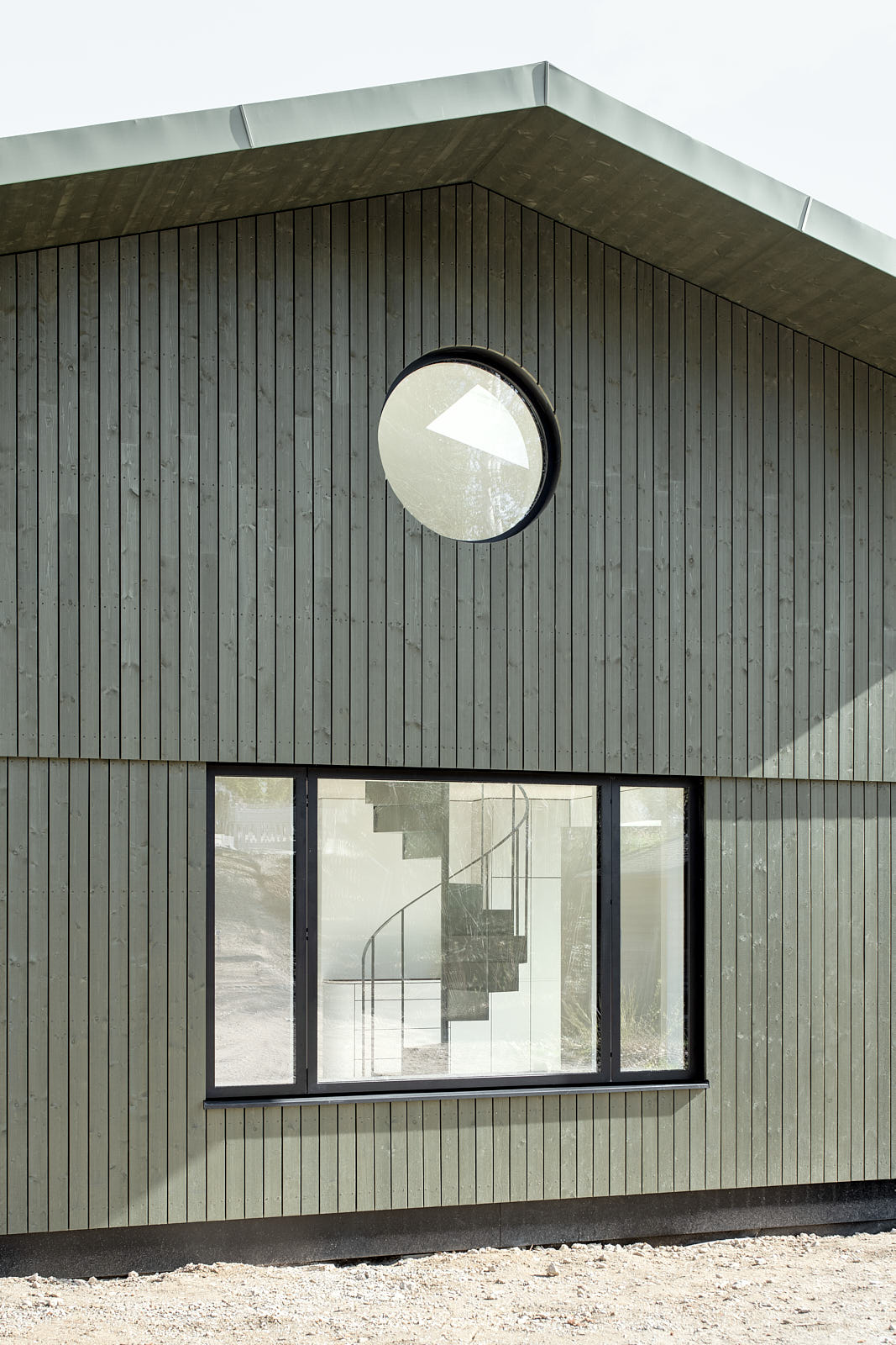 Das Gestaltung des Hauses ist angelehnt an traditionelle Bootshäuser, bei denen ein großes Satteldach die Fassade schützt. Der Holzbau ist nicht unterkellert.
