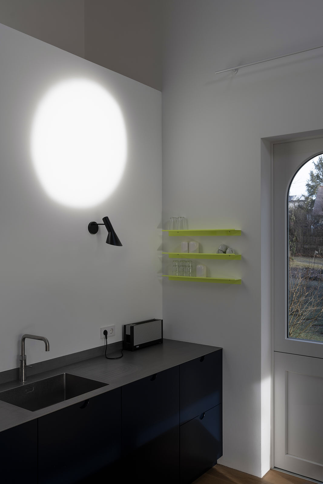 Planung für einen Neubau mit integrierter Werkstatt auf ein Seegrundstück am Wörthsee mit der Absicht, einen angemessenen Baukörper auf dem schmalen Grundstück zwischen zwei Bestandshäusern zu platzieren.